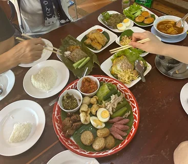 The dishes are something like this. One thing I noticed is that the food is very earthy, meaty, and has flavors without much spice, unlike Indonesian food. The food was good, according to me, though it wasn't warm, so it felt a bit uncomfortable. Having a good lunch and time to walk around. I saw these coconut crepes, in Indonesian, it's similar to Semprong, but becek. Becek is an untranslatable Indonesian adjective. But I'd say the closest word is "soggy".