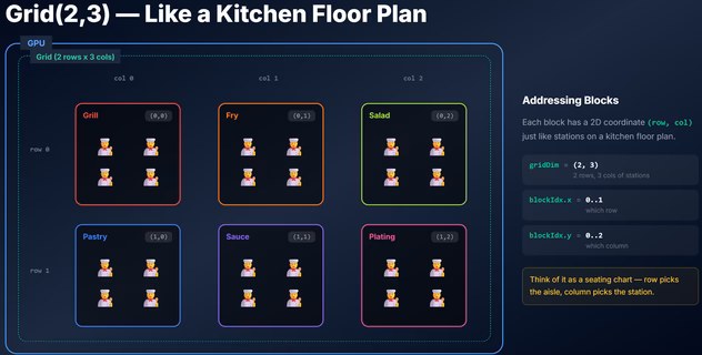| Shared memory | floor( sharedMemPerSM / (sharedPerBlock + 1 KB overhead) ) | e.g. 228 KB / 10 KB = 22 blocks |